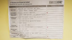 A la segona part de la sessió de treball un representant de cada grup de treball va fer la presentació del parlat a la plenària, rebent aportacions i preguntes dels participants. Les idees clau o “accions estrella” es van recollir a un mural que va servir per tenir un resum visual de les principals propostes. Finalment els assistents van fer una tria de les tres accions prioritàries a desenvolupar des de la xarxa, atenent a les motivacions personals.