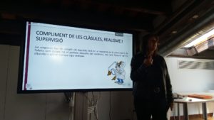 També s’explicà el projecte de cooperativa de serveis públics. Ho explicaren Ester Vidal, directora de serveis d’Economia Cooperativa, Social i Solidària i Consum de l’Ajuntament de Barcelona i Marina Berga, del Col·lectiu Ronda. Ronda ha fet un informe per saber si aquesta opció pot ser legal i s’han trobat amb un topall amb el control de l’ens públic. “A l’Ajuntament de Barcelona ens interessava veure les possibilitats de desenvolupar aquest marc. Els reptes són clars: els límits de control de l’ens públic o l’encaix de les persones treballadores, uns reptes evidents donat l’actual marc cooperatiu legal”, explicà la directora. Berga comentà experiències similars que han estudiat en el seu informe, com el cas d’Andalusia o el de la Comunitat Valenciana.