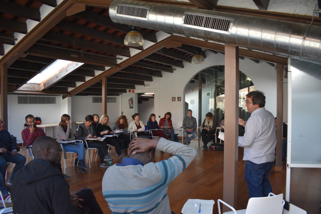La jornada de treball es va iniciar amb dues activitats paral·leles: una taula rodona per tractar com desenvolupar les finances i assegurances ètiques als municipis i en la que hi va participar la Fundació Fiare, ASCA, Coop57 i ARÇ Correduria d’Assegurances. I, per altra banda, un taller sobre experiències d’inserció socio-laboral.